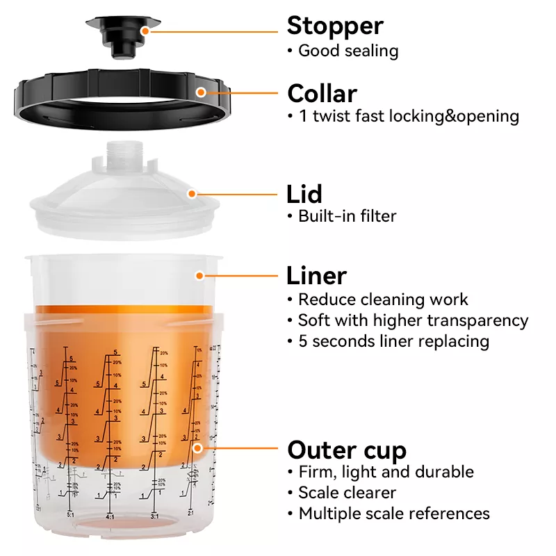 AYSPAT 200ML Speedy Paint System 2.0은 원래 1.0 시리즈의 업그레이드 버전입니다. PPS 1.0 시리즈를 기반으로 한 구조 최적화를 통해 더욱 향상된 성능을 실현합니다. AYS3.5 스피디 페인트 시스템은 AYS3.0 시리즈 어댑터와 함께 사용하여 다양한 유형의 스프레이 건과 연결할 수 있습니다. 중국 일회용 스프레이 건 컵 공장으로서 우리는 고품질 스프레이 페인트 컵을 생산하고 OEM 및 ODM 맞춤형 생산을 지원합니다. 일회용 페인트 컵을 구입하려는 경우 문의 사항을 보내 주시면 견적을 제공해 드리겠습니다.