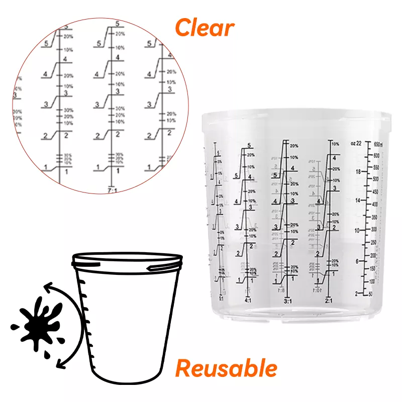 - 외부 컵 스케일은 코로나 처리되어 용제에 의해 쉽게 손상되지 않으며 스케일이 명확하고 정확합니다.