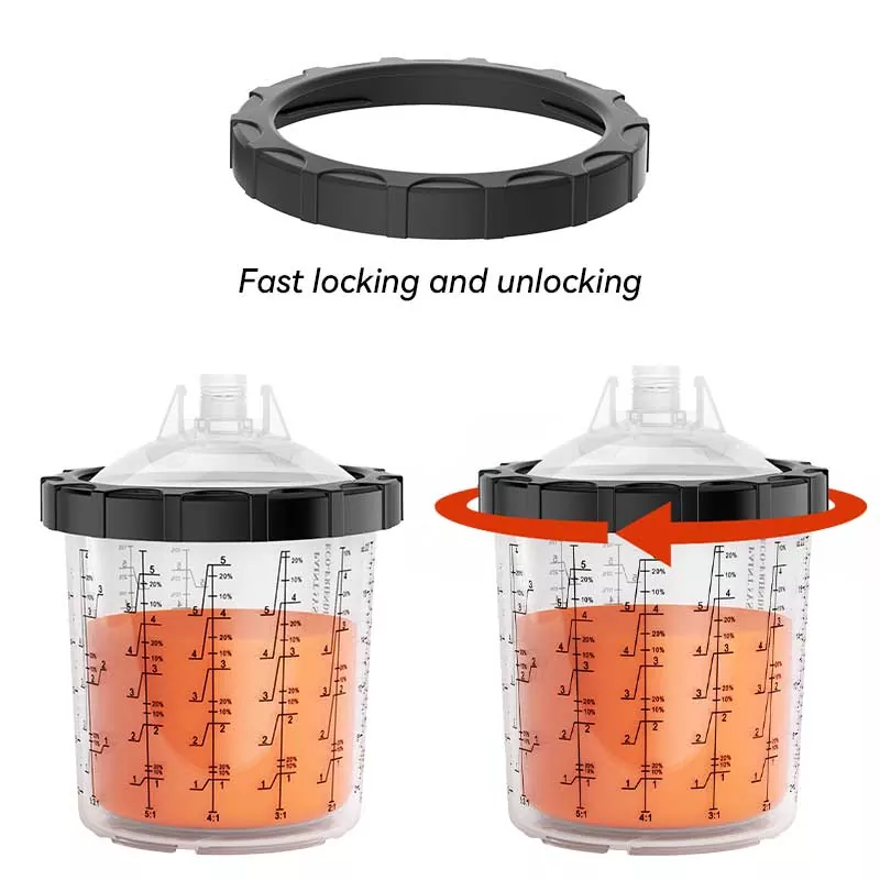 이 제품은 기본적으로 전통적인 중력 피드 컵을 대체합니다. 페인트가 더 많이 절약 될뿐만 아니라 페인팅의 효율성을 향상시킵니다. 구체적으로, 페인팅을 할 때 라이너의 자동 나선형 다운의 절묘한 디자인은 페인트를 완전히 활용할 수 있습니다. 한편, 빠른 잠금 플러스 플러스 라이너 교체 설계는 컵을 씻지 않으므로 페인팅 작업을 효율적이고 반복적으로 수행 할 수 있습니다. 우리는 다른 스프레이 건 애호가의 경험 요구를 충족시키기 위해 시장에있는 거의 모든 브랜드 스프레이 건을위한 어댑터를 보유하고 있습니다. 어댑터는 스테인레스 스틸로 만들어졌으며, 페인트 부식에 내구성이 뛰어나고 내구성이 뛰어납니다. 라이너와 뚜껑의 단단한 조합은 컵 시스템이 페인트를 칠하는 동안 페인트를 누출하지 않도록하고 폐기물을 피하기 위해 사용하지 않은 페인트의 장기 저장을 지원합니다.