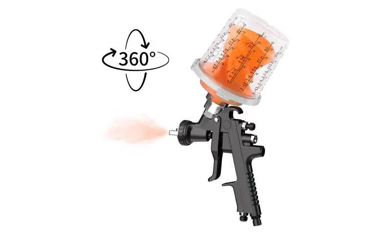 LF 남은 페인트가 있고, 마개로 밀봉하고, 스프레이 건 컵을 뒤집고, 나중에 사용하기 위해 보관하십시오.